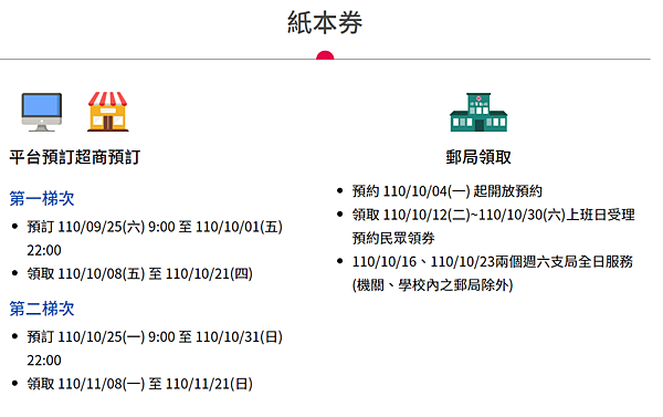 2.長輩想用紙本,9/25可以在平台第一波登記超商預訂10/8領取、或10/4郵局預約10/12領取 (連結)
